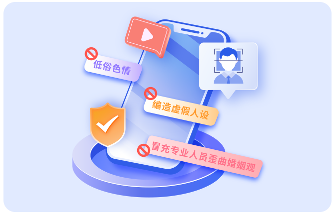 爱聊在第三季度积极响应网信办要求,开展“清朗·网络直播领域虚假和低俗乱象整治”专项行动,针对“编造虚假人设”“低俗色情”“冒充专业人员歪曲婚姻观”“刻意营造冲突氛围”“发布违规引流信息”等直播乱象,加强人工审核及巡查频次,上线针对性风控策略加强不良信息内容识别,并及时采取删除、屏蔽、提醒等有效措施,对违法违规用户进行严惩。本季度,爱聊封禁恶意引流账号31874例,新增敏感词数量2300个